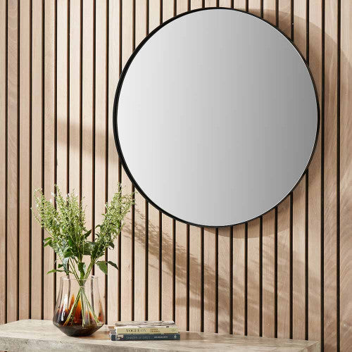 Matt Black Wood Round Mirror - Available in Copper Glass & Foxed Glass -